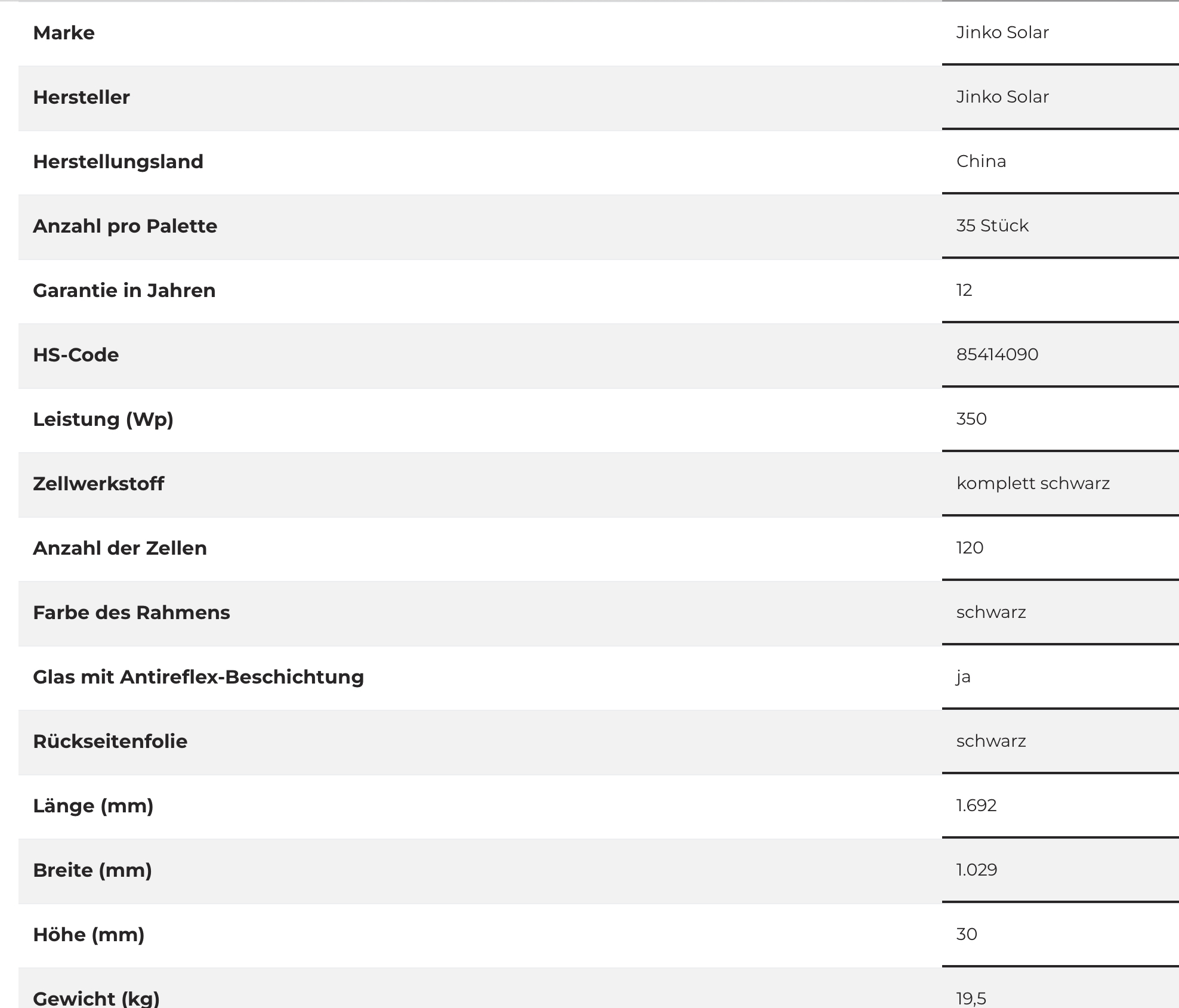 Solarmodule Jinko 350W vollschwarz
